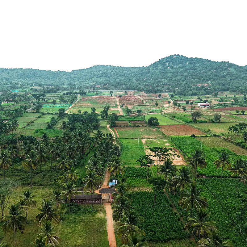 Prakruthi is a managed farmland where village life and nature unite, offering sustainability, serenity, and secure investment – professionally nurtured land that connects you to simplicity, prosperity, and a lasting bond with the earth.